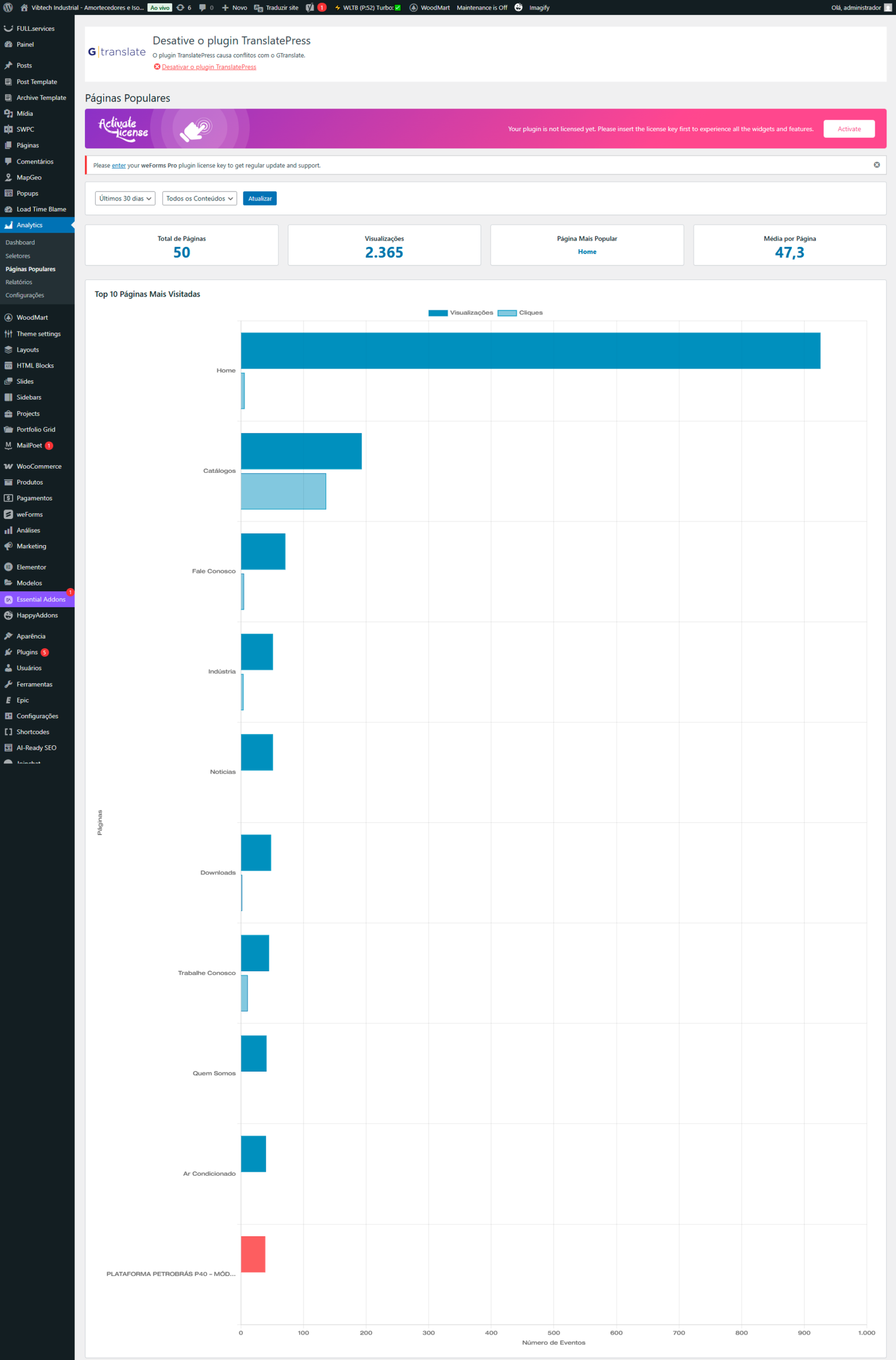 Filtros Avançados: Segmente dados por “Apenas Produtos”, “Posts do Blog” ou “Páginas”.
