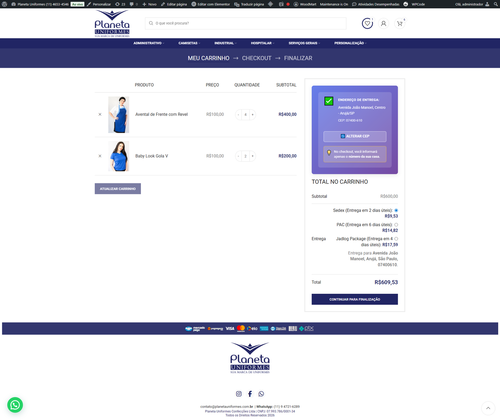 • Cálculo instantâneo de frete integrado ao WooCommerce