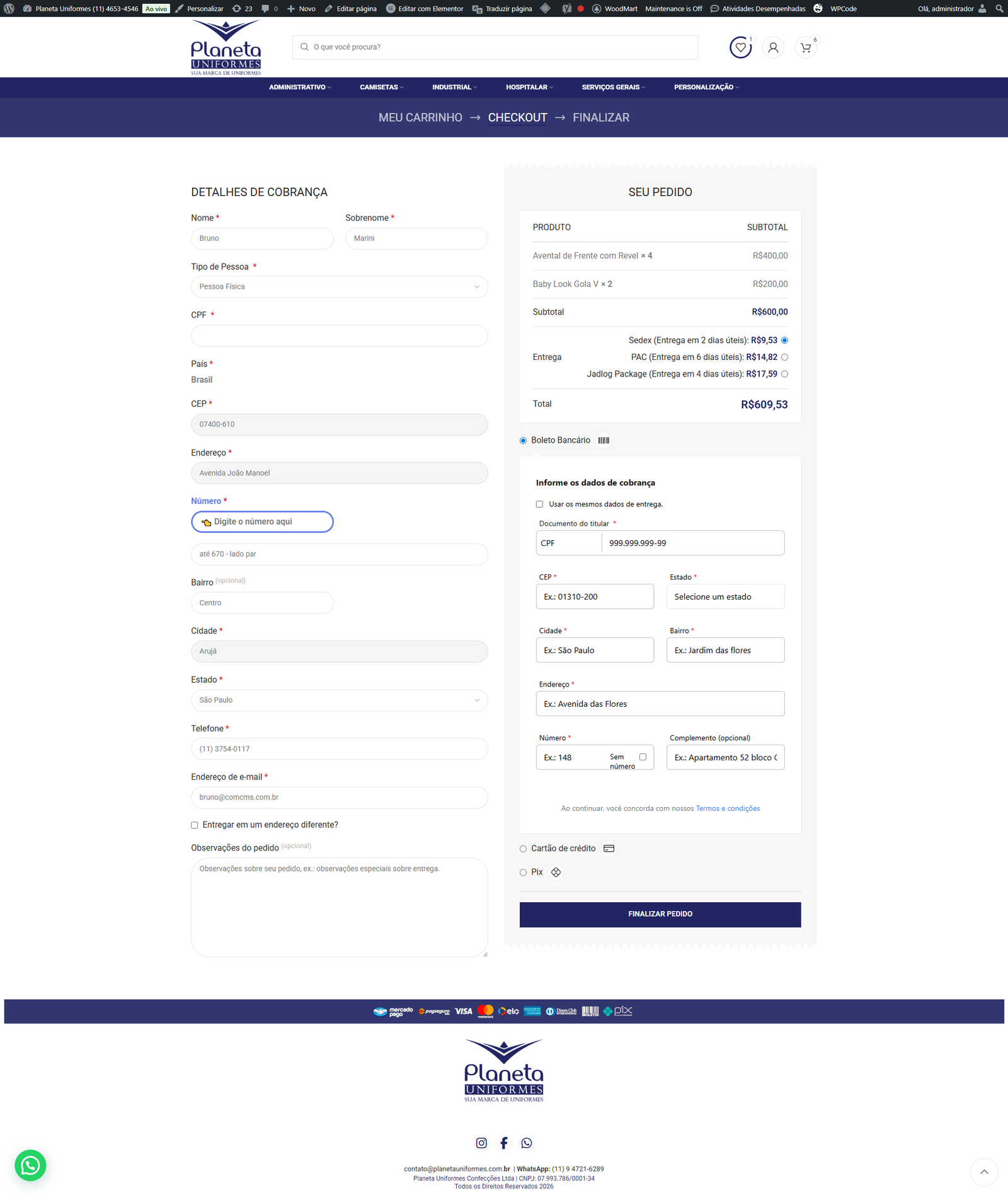 ✅ Número da casa (no checkout)
